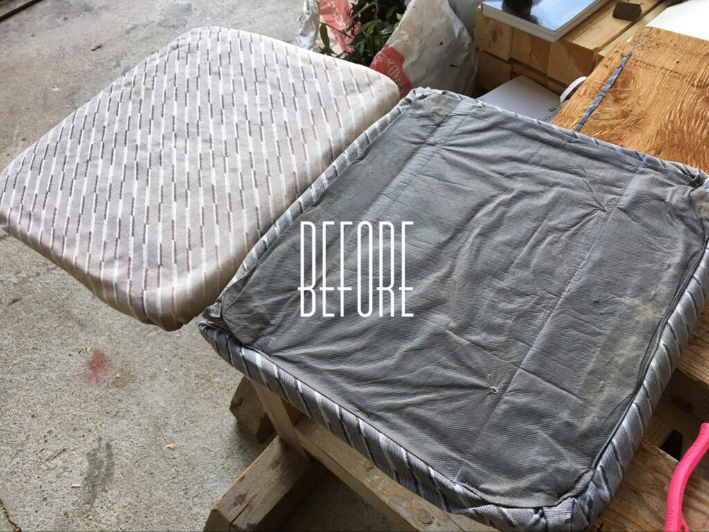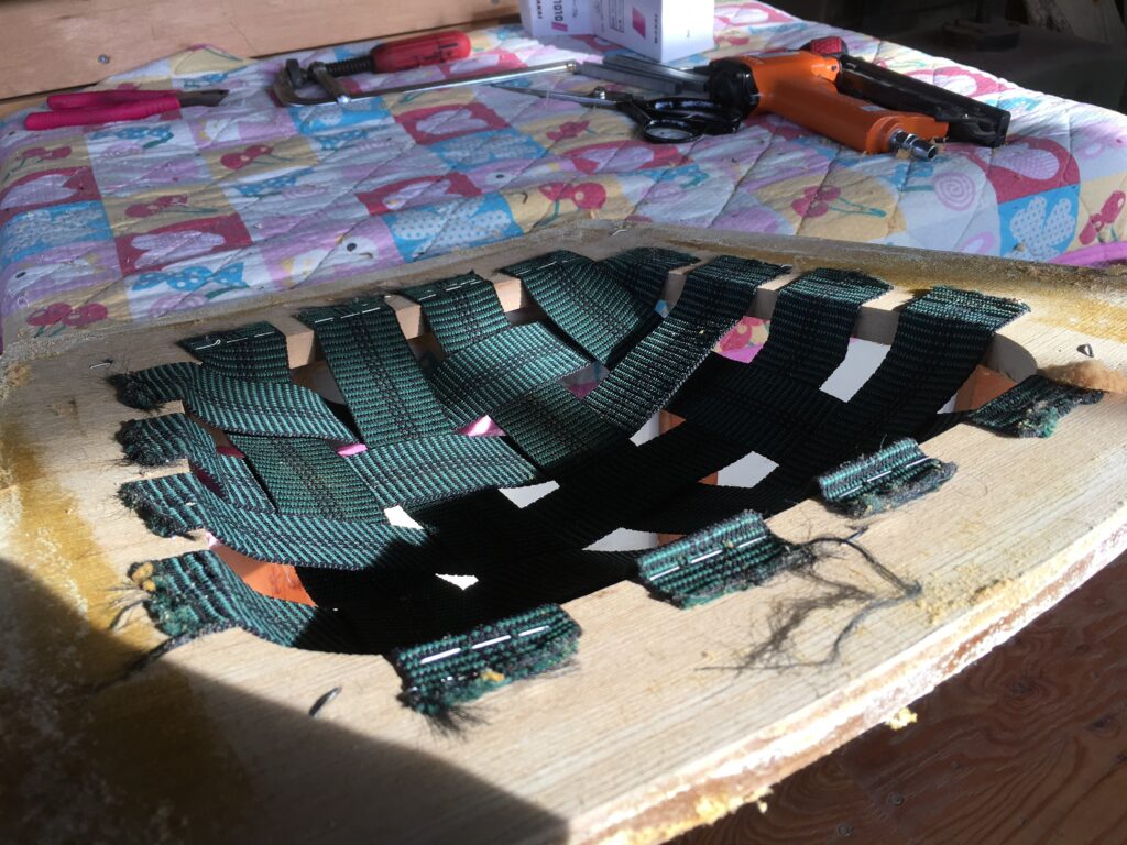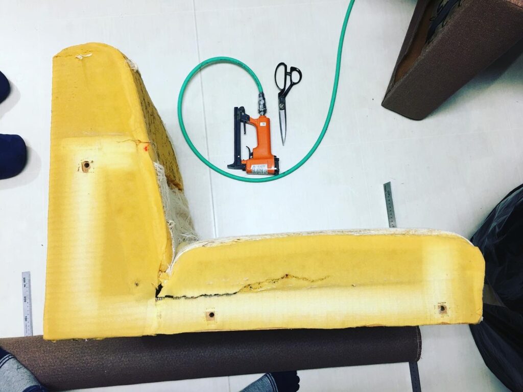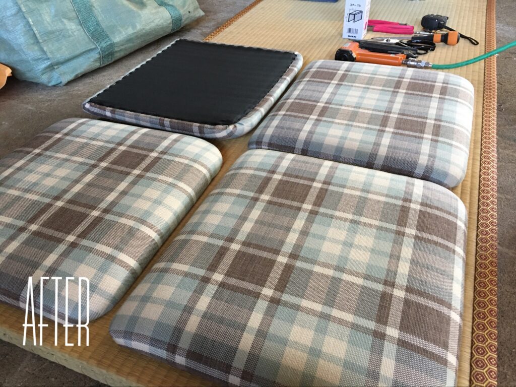 座面のウレタン交換¥3,000〜へたりや沈みの改善に。密度・硬さに応じて調整。